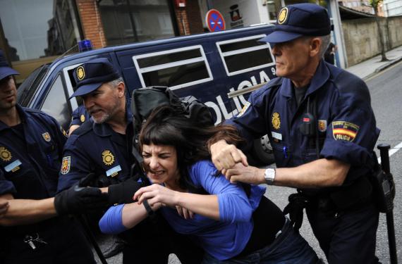 Βροχή έπεφταν οι... κουβάδες με νερό από τα μπαλκόνια σε πολυκατοικία στο Οβιέδο όπου η αστυνομία επιχειρούσε να σπάσει την πόρτα και να κάνει έξωση σε μία οικογένεια που δεν μπορούσε πια να πληρώσει τις δόσεις του στεγαστικού της δανείου.